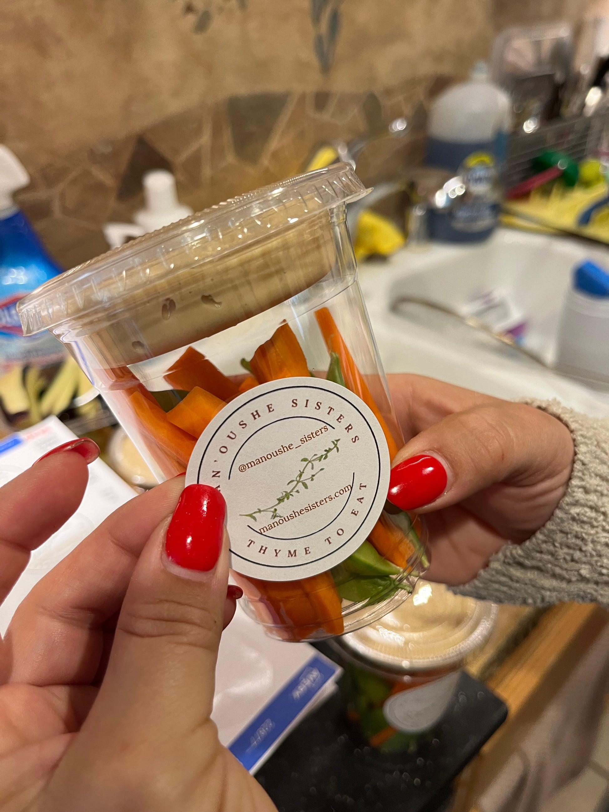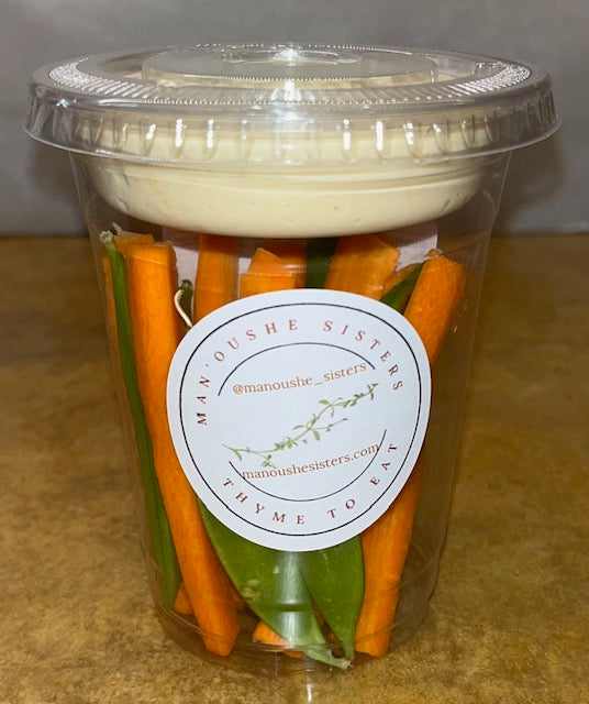 Our house made creamy and tangy hummus served with carrot sticks and snap peas. Perfect snack for on the go. Convenient packaging for on the go. Great source of protein from the chick peas.